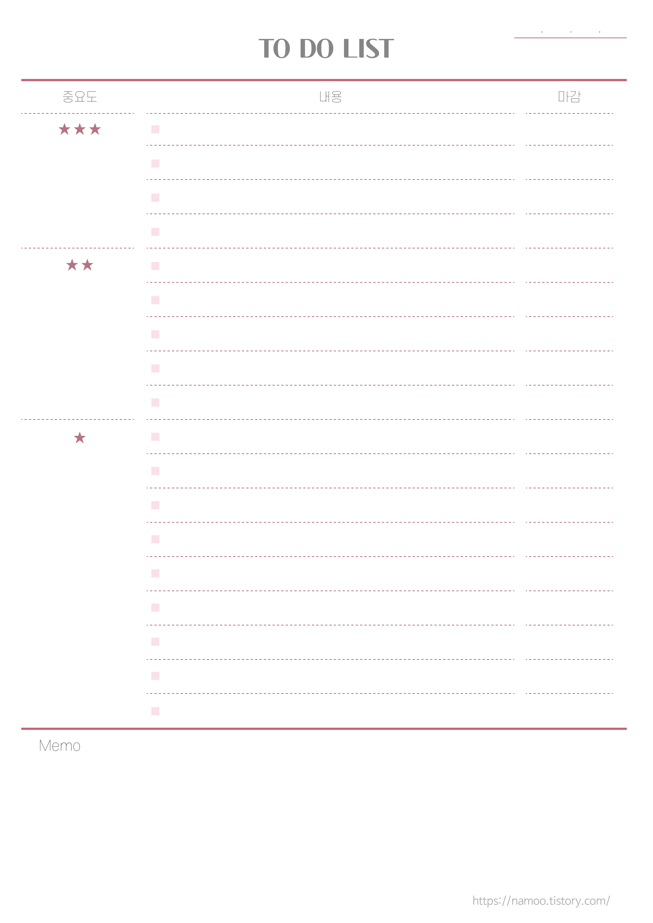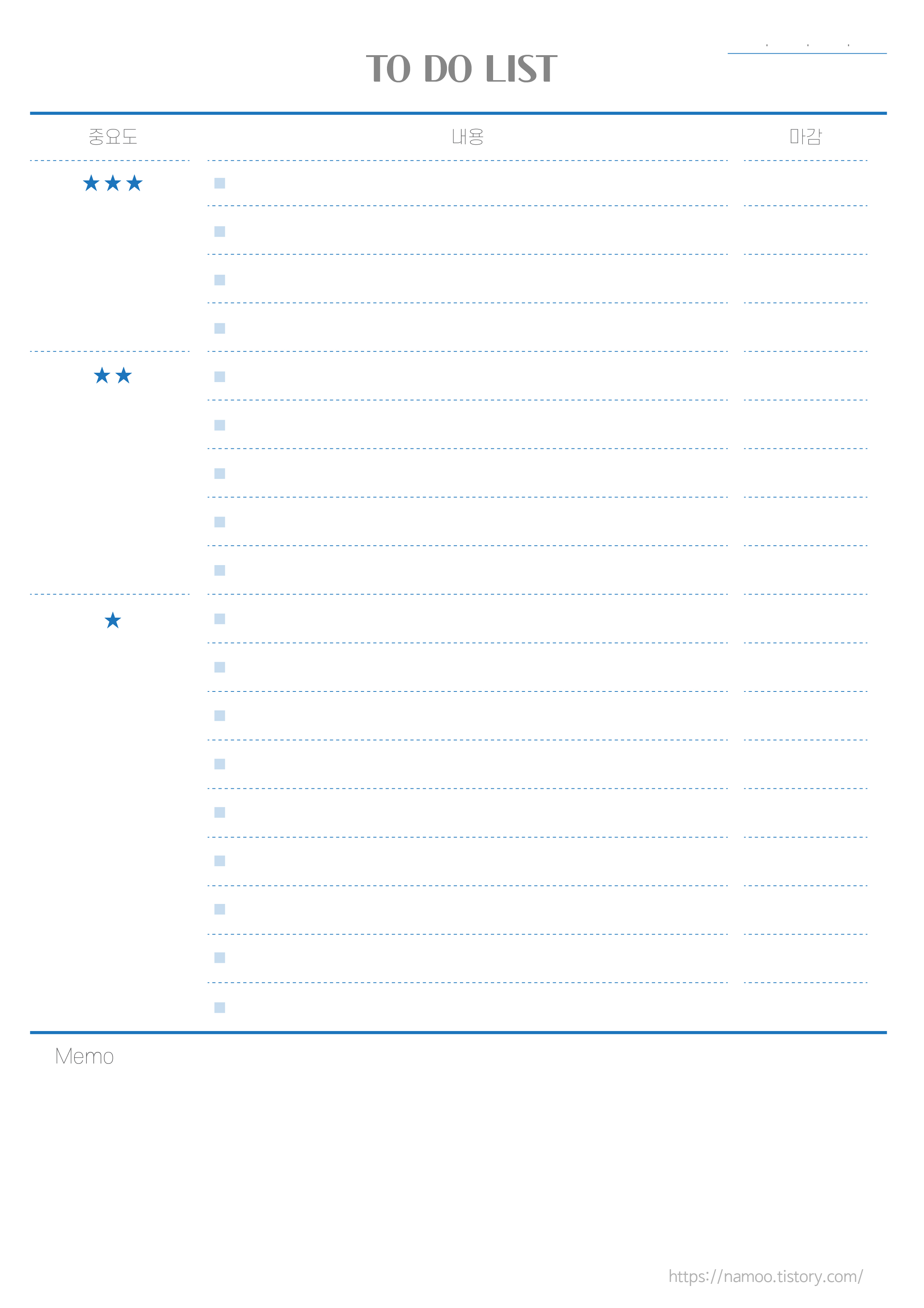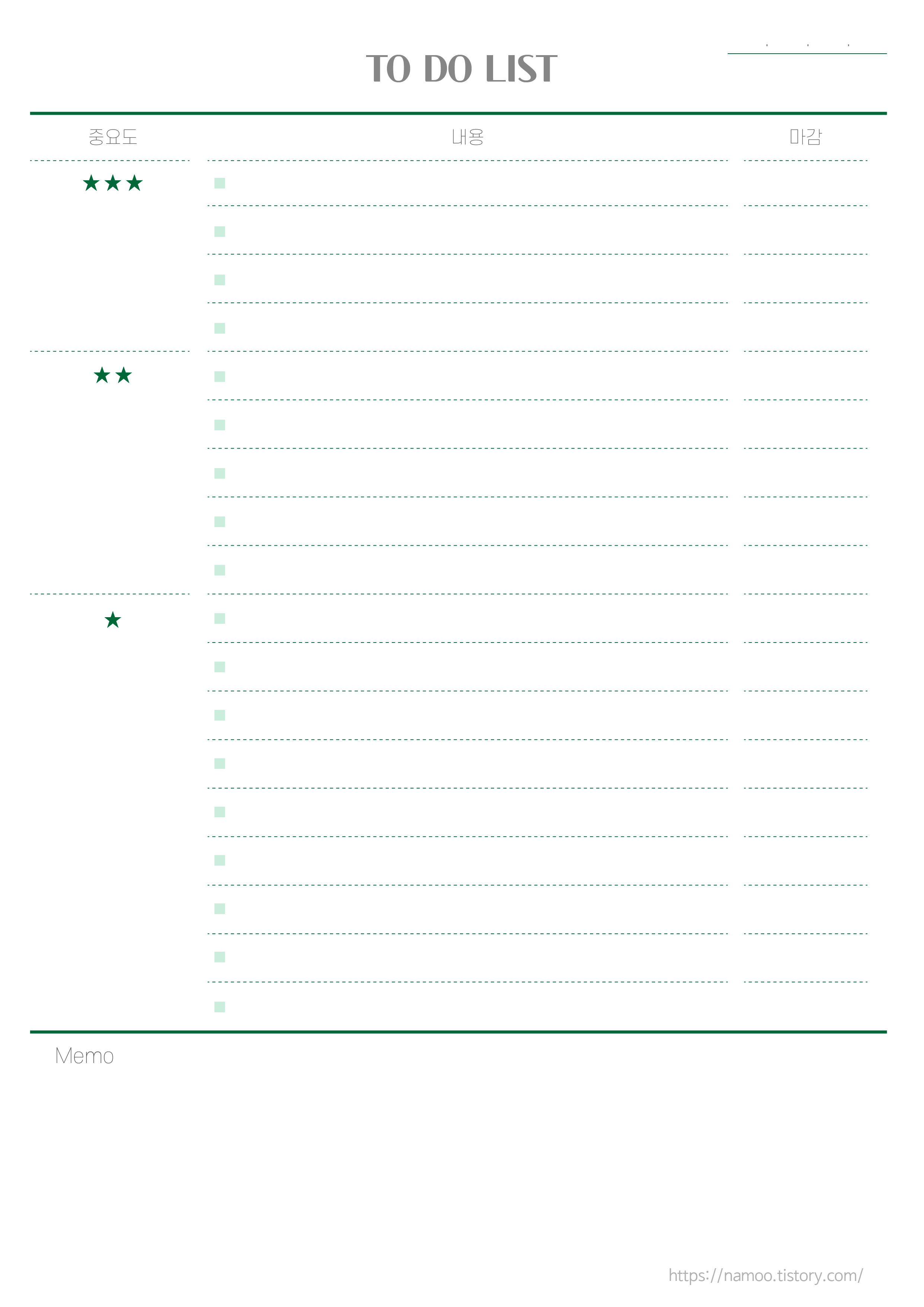 첫번 째 양식에서 중요도 표시한 것들을 정리해볼까 싶어서 만든 양식이에요