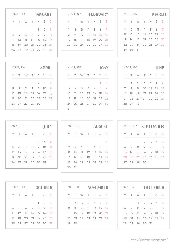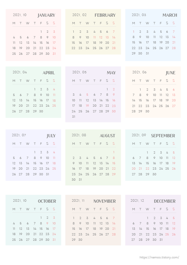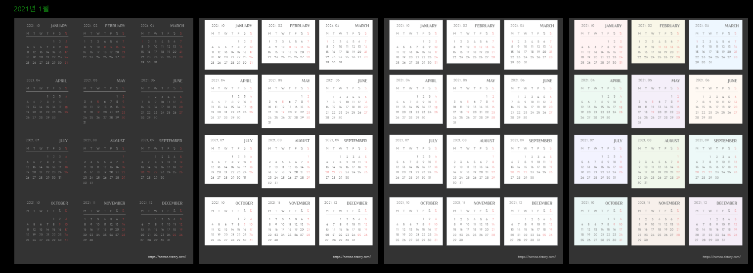 하나는 하얀 배경, 하나는 배경없는 달력이에요!