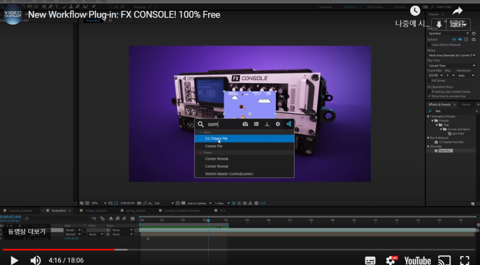 fxconsole은 에펙에서 영상을 만들 때 사용할 이펙트를 바로바로 검색해주는 플러그인이에요