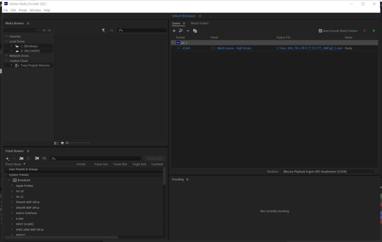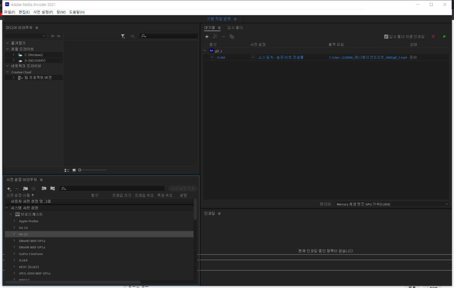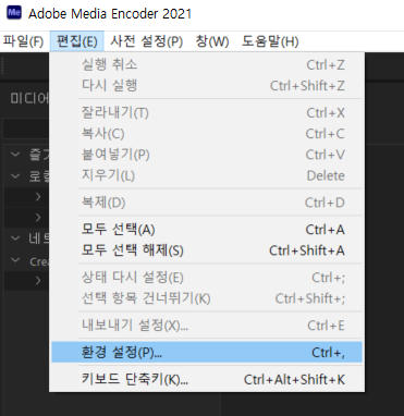 media encoder 한글/영어 설정!