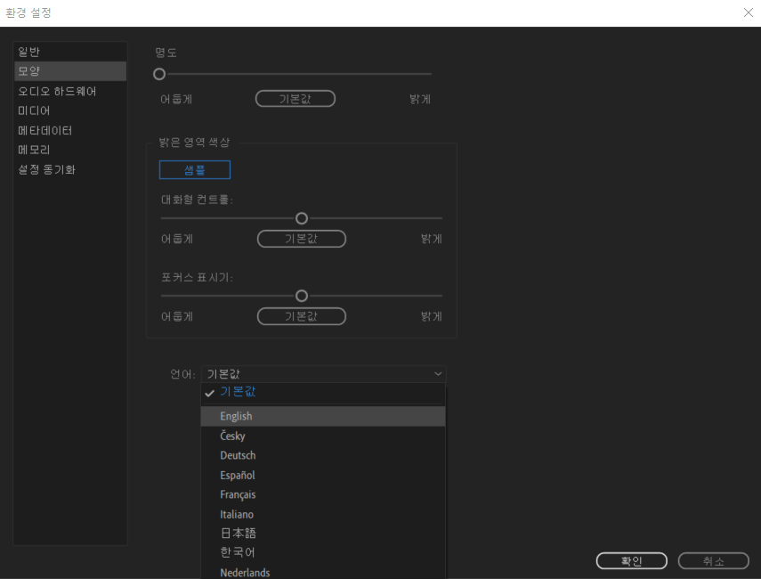 어도비 크리에이티브 에서 설정도 영어로 되어있는데 왜 한글인가?